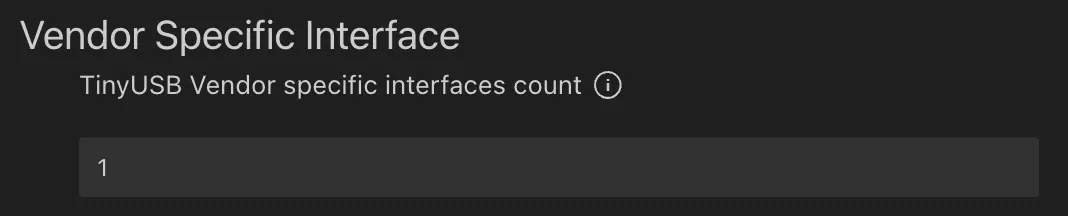 そして、menuconfigからVendor Specific Interface (TINYUSB_VENDOR_COUNT) の数を1にします。