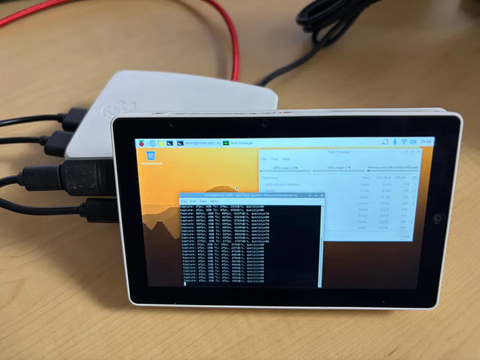 とはいえ55fpsでも十分早いですし、発色がいい方が全体的な画質としてはいいと思ったので、Tab5 Screen Streamerではフレームレートを多少犠牲にしてでもRGB888で動作させています。