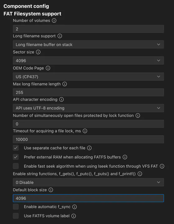 sdkconfigファイルでいうと FATFS_VFS_FSTAT_BLKSIZE ってやつです。(初期値0)